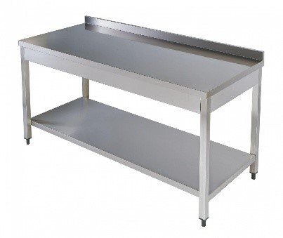 Experience the Ultimate Stainless Steel Table 304, engineered for durability, hygiene, and high-performance kitchen workspaces. Made from premium 304 stainless steel, this table delivers exceptional corrosion resistance and long-term reliability. It features a sturdy 1.5 mm thick top panel, a 1.2 mm lower shelf, and strong 4 × 4 cm stainless-steel legs for maximum stability. The integrated 10 cm rear backsplash ensures a clean and safe food-prep area by preventing spills and splashes. With spacious dimensions of 140 × 70 × 85 cm, this Stainless Steel Table 304 is ideal for restaurants, cafés, catering services, and commercial kitchens. Locally manufactured with superior craftsmanship, it offers a perfect balance of strength, efficiency, and modern design. Optimize your workspace with a professional table built to handle heavy-duty tasks with ease.